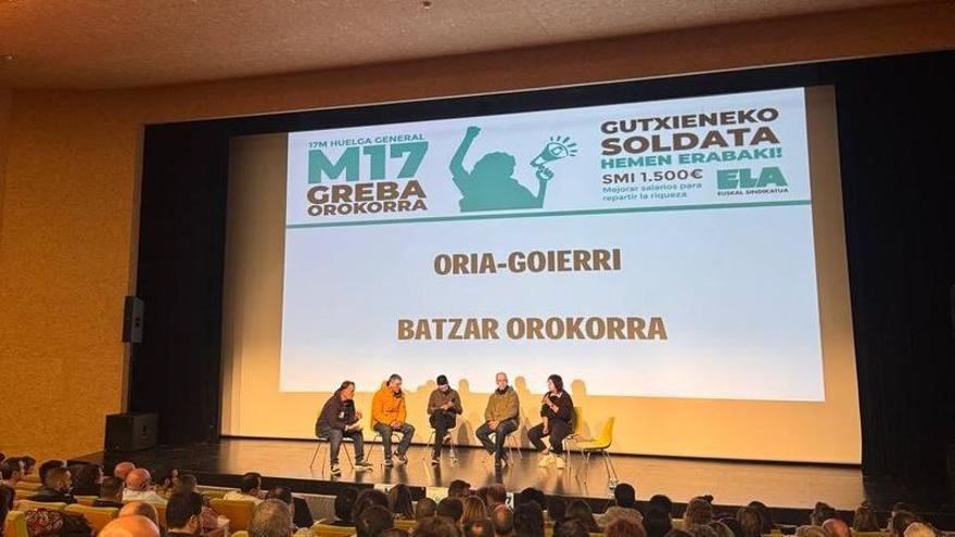 ELA está reuniendo durante estos días a cerca de 4.000 militantes en las 13 asambleas comarcales que se van a celebrar entre este lunes y el jueves 11 de marzo para impulsar la huelga general del 17 de marzo. Todas las asambleas acabarán con sendas movilizaciones en 13 localidades.