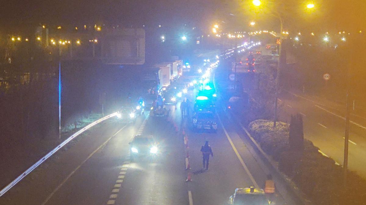 Corte de carretera en la Ronda de Pamplona.