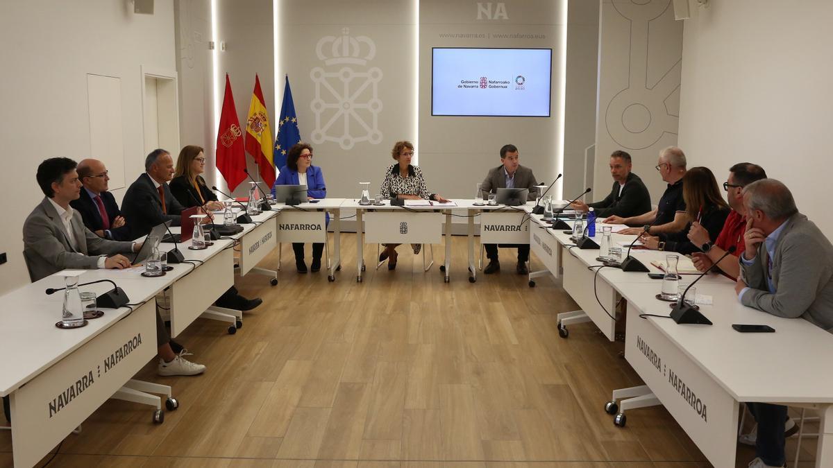 La sesión ha estado presidida por María Chivite, el presidente de la Confederación Empresarial Navarra, Manuel Piquer; el secretario general de UGT en Navarra, Lorenzo Ríos; y el secretario general de CCOO en Navarra, Josema Romeo.