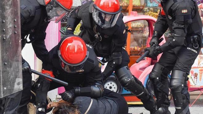 El agente de la Ertzaintza ha sufrido diversas contusiones durante los enfrentamientos con los manifestantes, mientras la joven presenta lesiones causadas por el estallido de un petardo, según han informado a Europa Press fuentes del Departamento vasco de Seguridad.