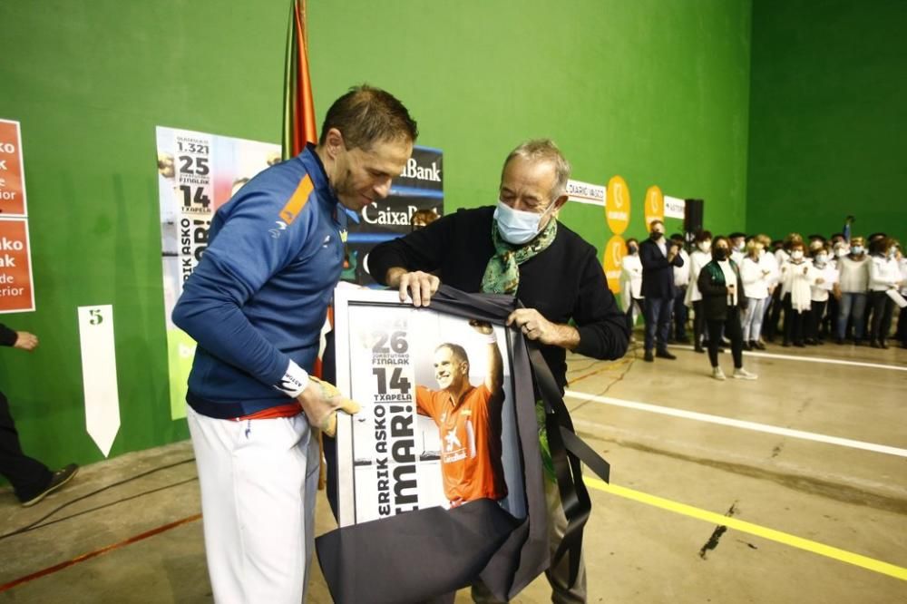 Partido y participantes en la despedida de Aimar Olaizola de los frontones