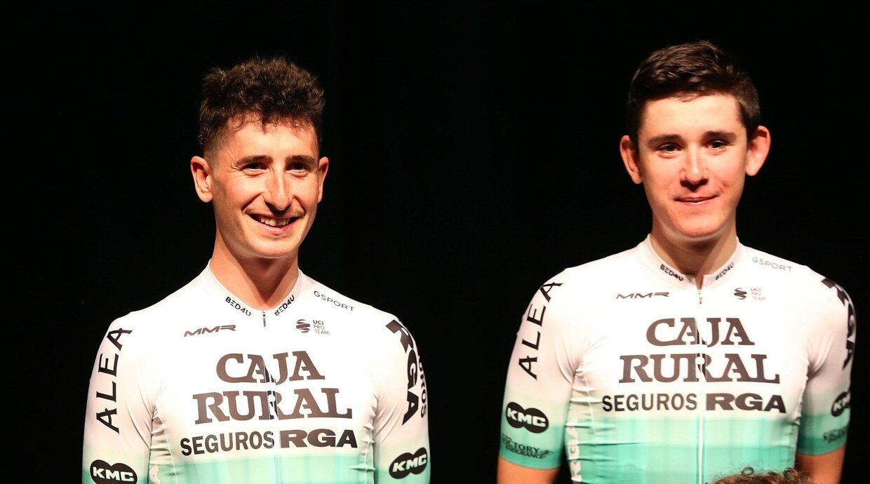 Presentación del Caja Rural-Seguros RGA con invitados como el campeón olímpico Samuel Sánchez, el recién retirado en Caja Rural, Mikel Nieve, y el emblemático ciclista navarro Miguel Induráin.