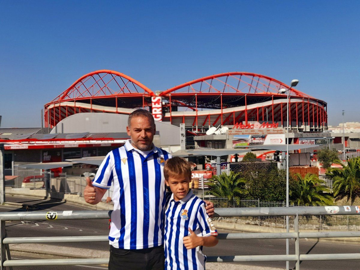 Pese a la lluvia, los colores txuri-urdin han brillado durante todo el día en la capital portuguesa, antes de un partido de Champions ante el Benfica que llena de ilusión a la afición realzale. "¡Otra vez en Europa van a ver a la Real!"