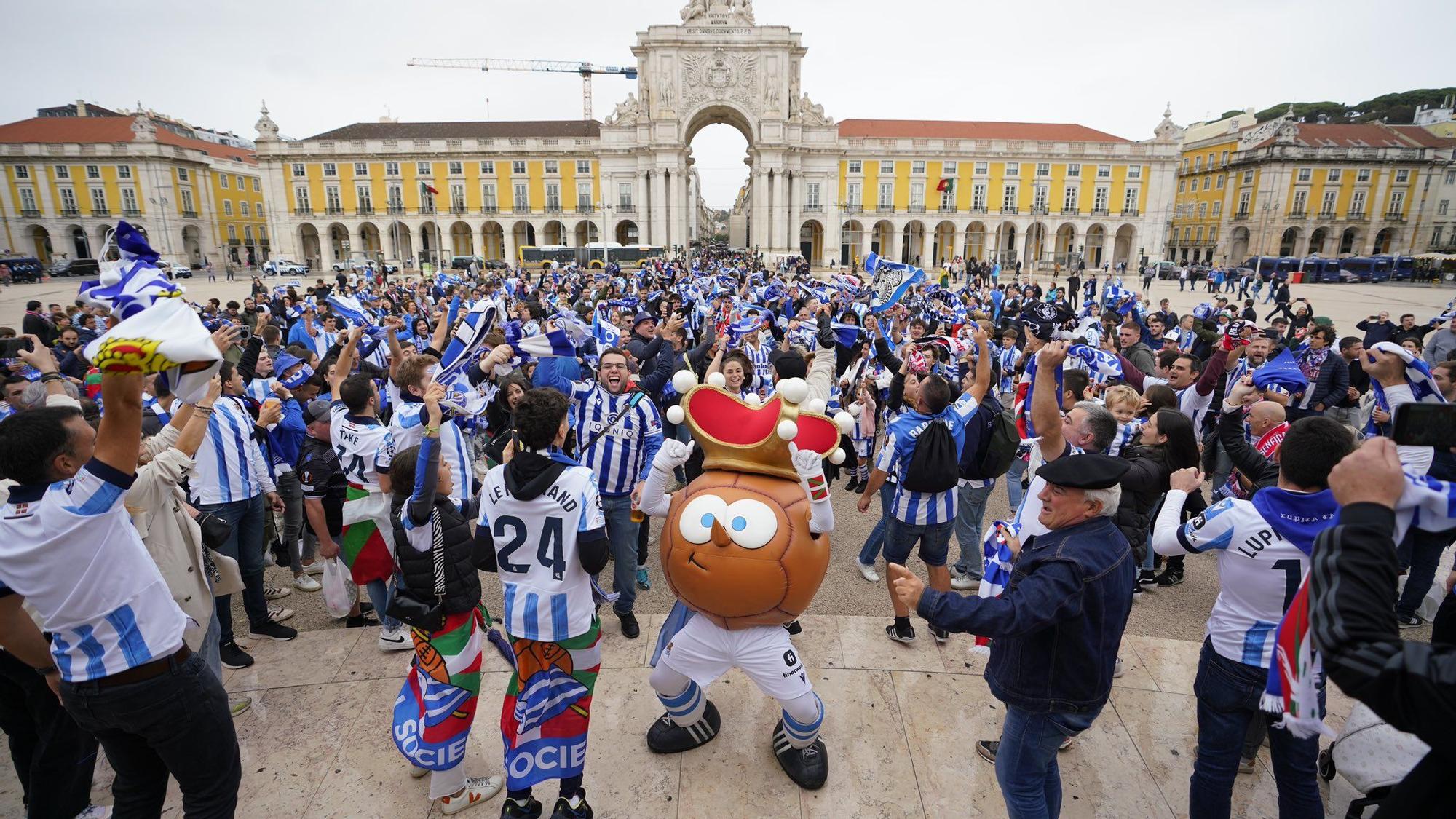 Fotos de la afición de la Real Sociedad por las calles de Lisboa