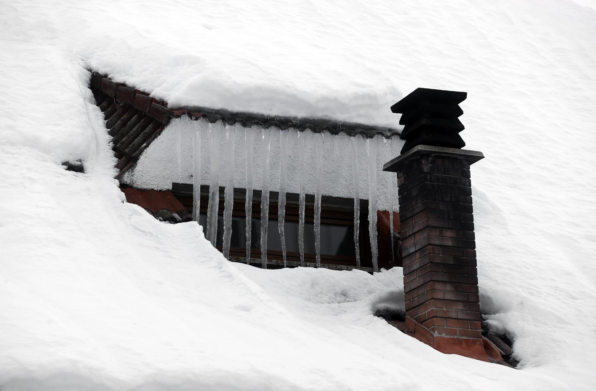 Una persona abre la ventana de su casa donde grandes carámbanos de hielo penden del tejado, en Espinal, Navarra.