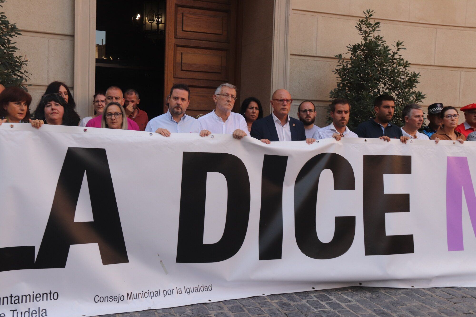 En la concentración, en la que se ha mostrado una pancarta con el lema "Tudela dice no", se han escuchado gritos de "ni una agresión sin respuesta".
