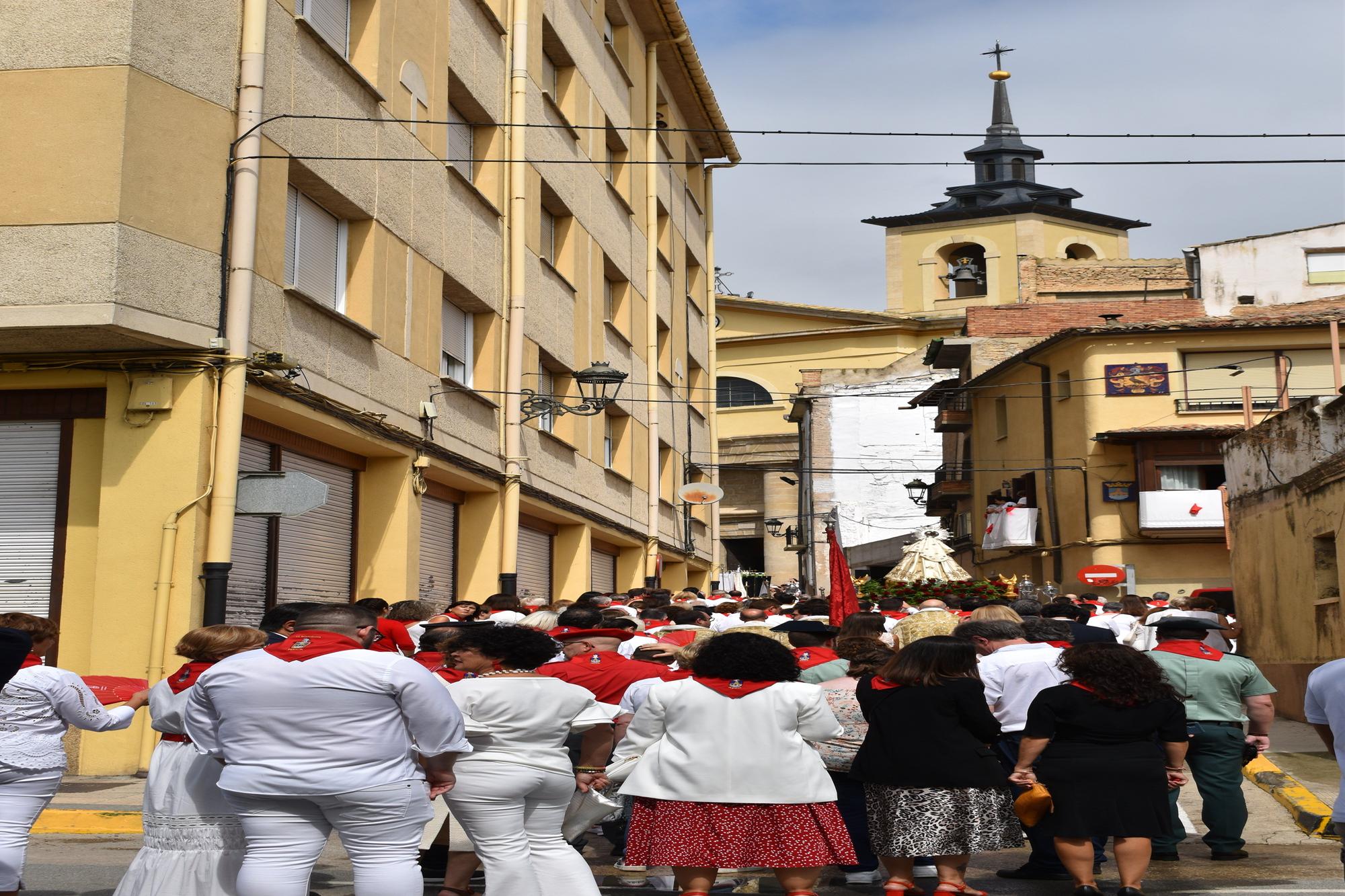 Iván Jalle Alonso, de 25 años, colocó el pañuelo de honor a la talla de la Virgen de Nieva a la altura de la plaza