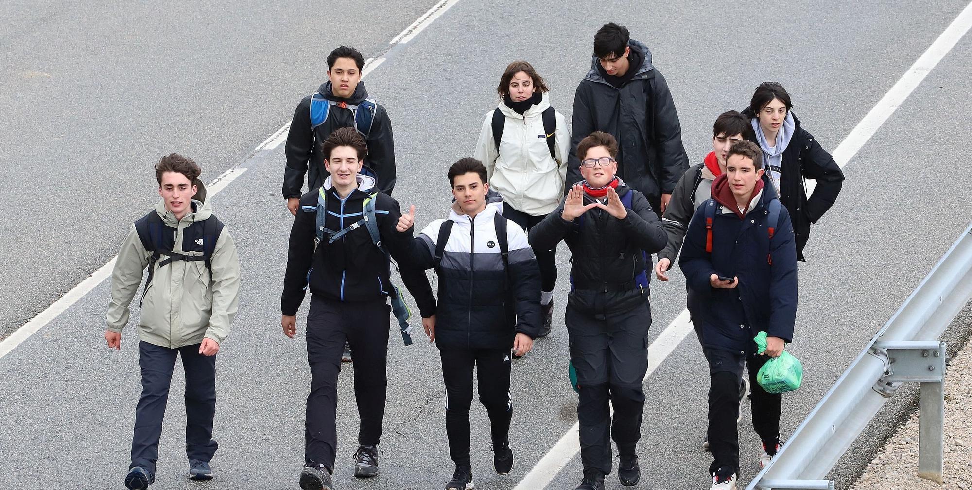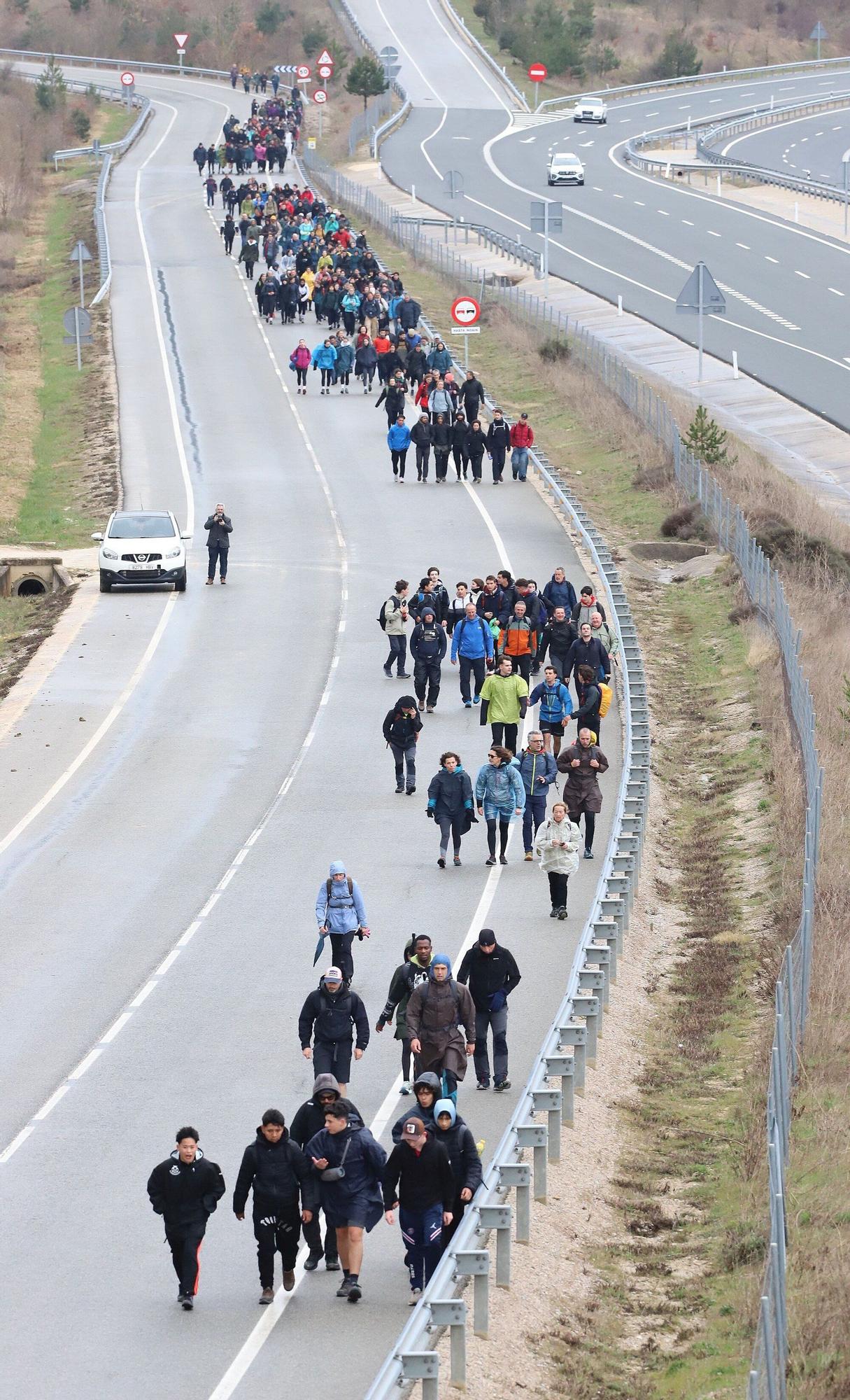 Peregrinos de toda Navarra caminan ya hacia la localidad de Javier en el marco de la primera Javierada de 2025, marcada por un tiempo desapacible