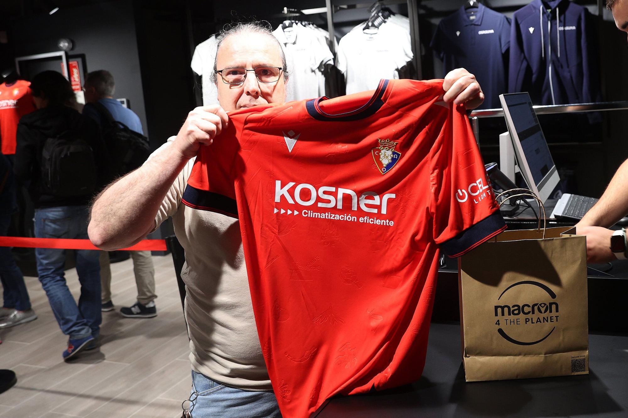 Fotos: los primeros aficionados de Osasuna que compran la nueva camiseta