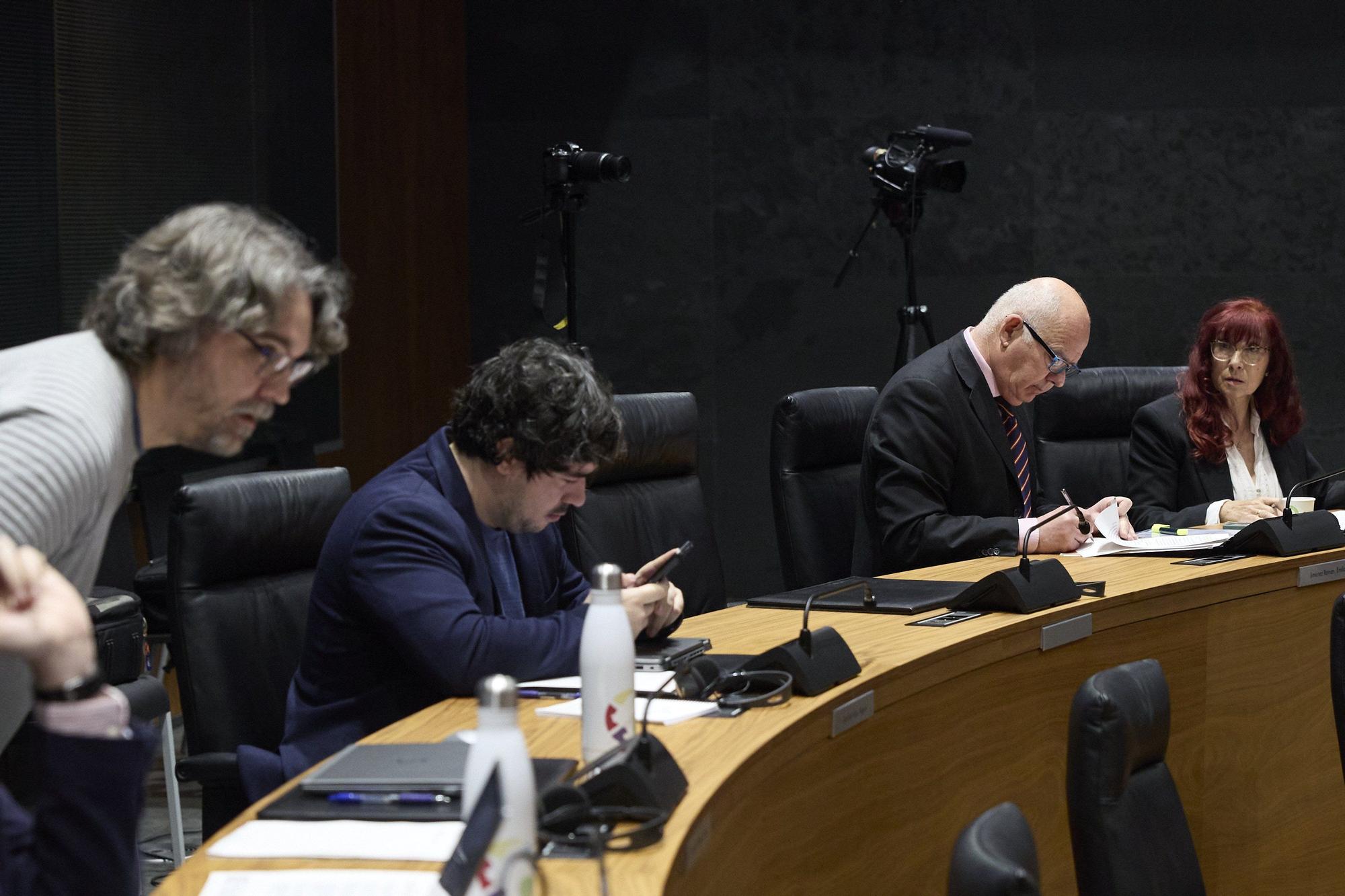 Ver galería >EH Bildu, Geroa Bai y Contigo abandonan el pleno en el debate de la moción de Vox contra la inmigración.