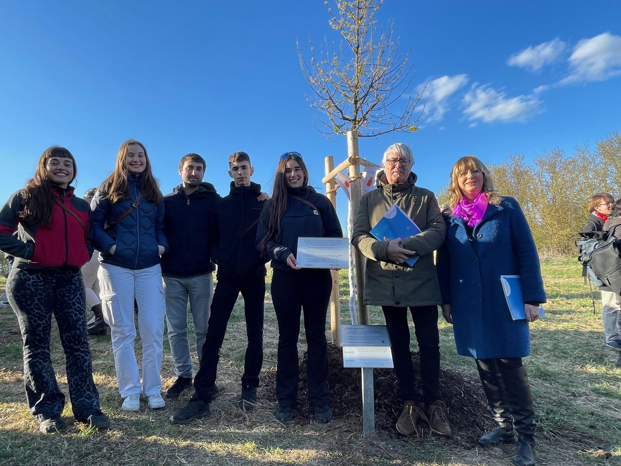 Actos del 80º aniversario de la liberación de este campo alemán junto a alumnado de dos centros educativos navarros, que han plantado dos hayas y colocado una placa en recuerdo de las personas deportadas, una decena de ellas en este lugar