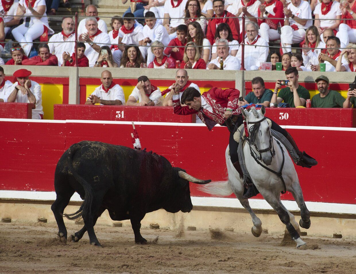 Ver galería >El rejoneador navarro Guillermo Hermoso de Mendoza ha debutado esta tarde en la Plaza de Toros de Pamplona con dos orejas y puerta grande.