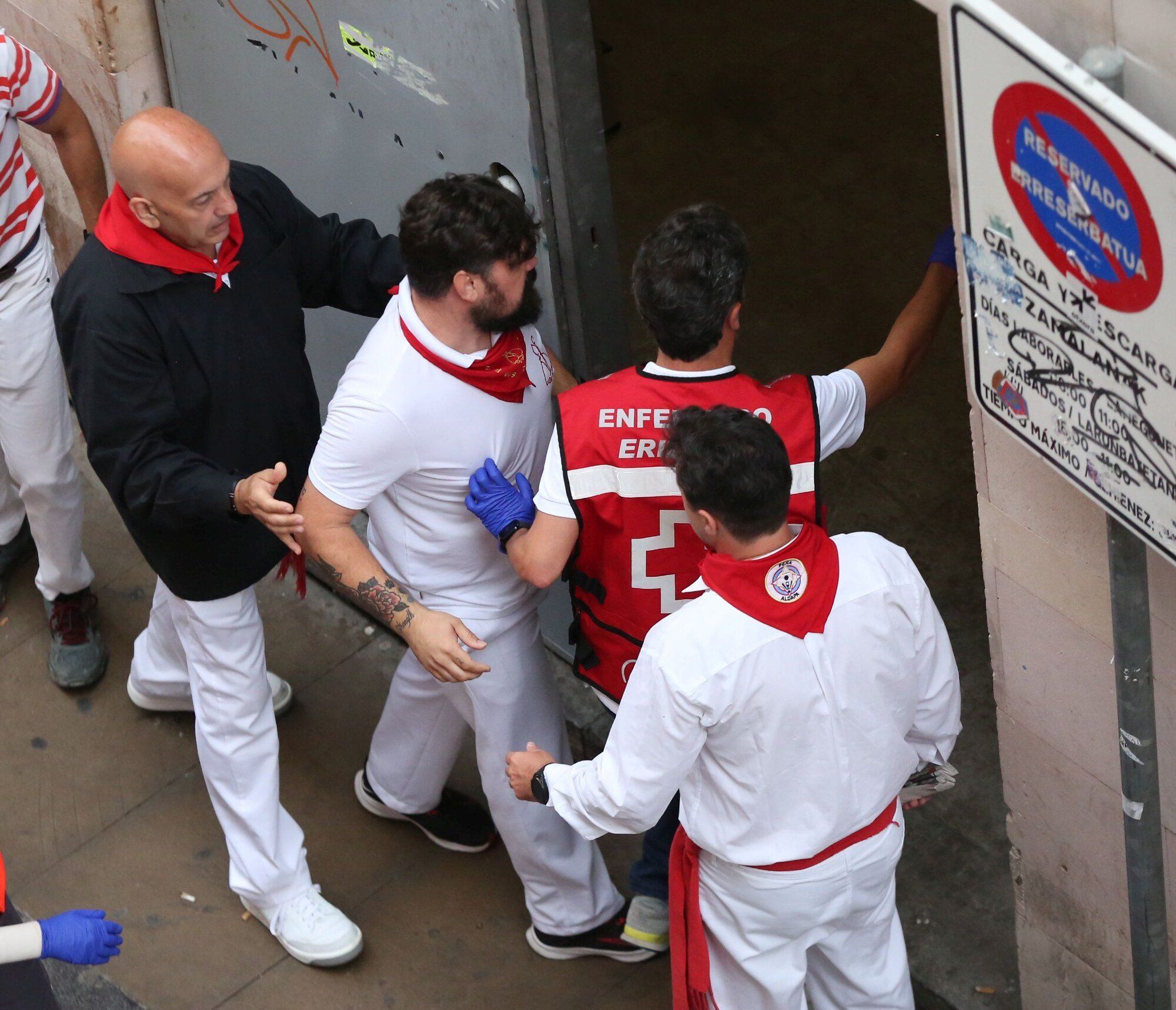 [FOTOS] Quinto encierro de San Fermín | La secuencia en la que dos corredores son arrollados por la manada en Santo Domingo