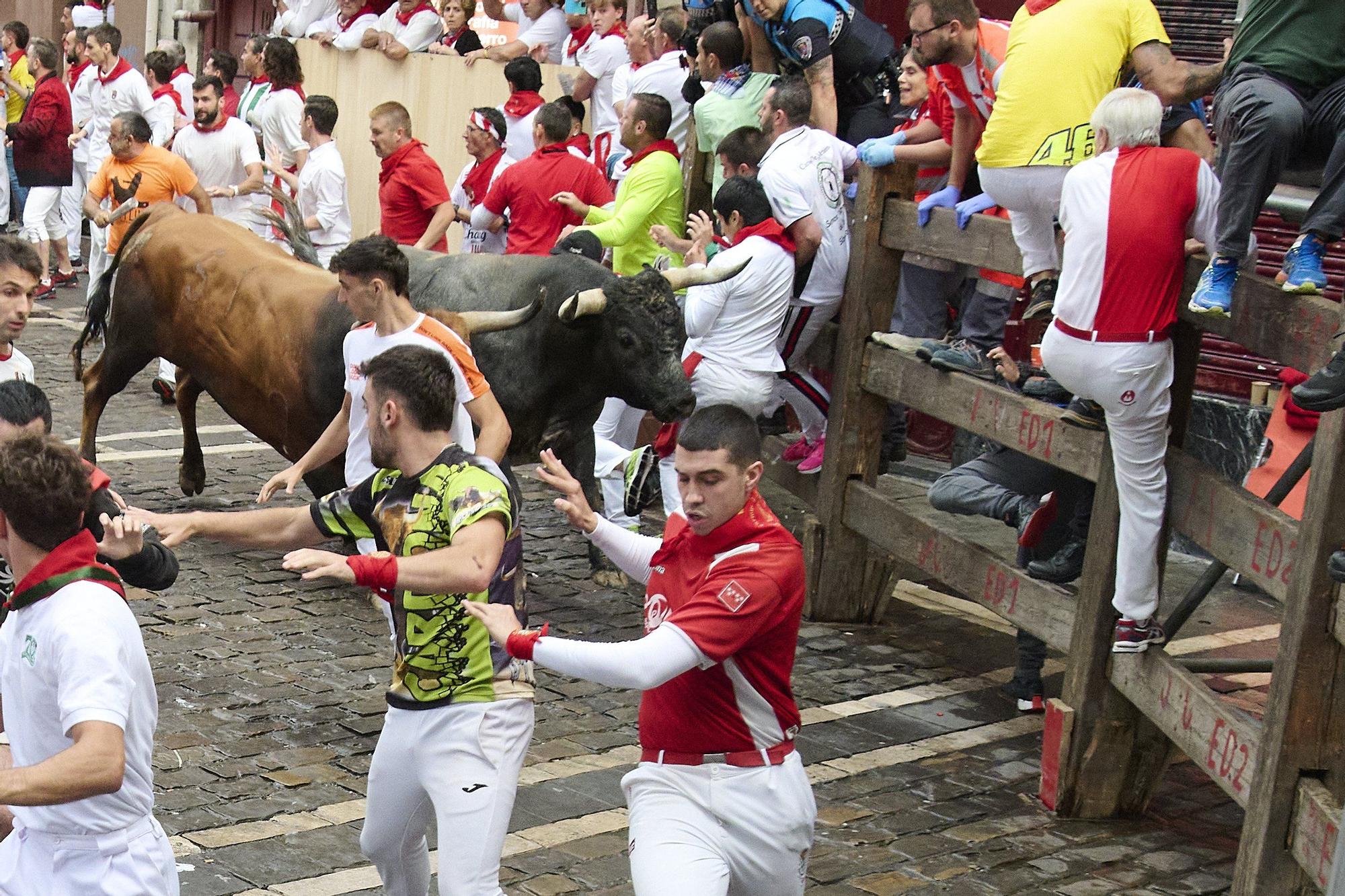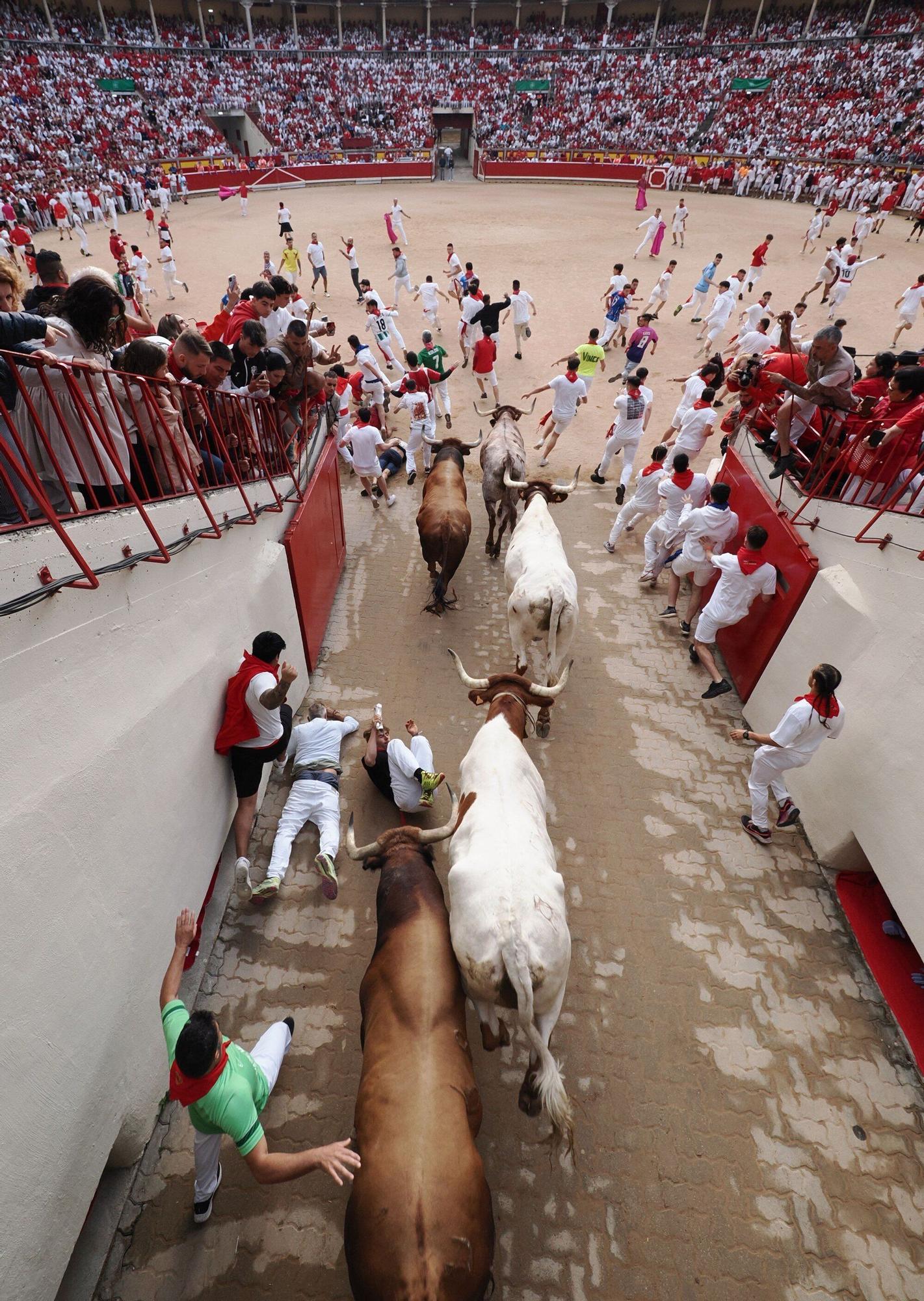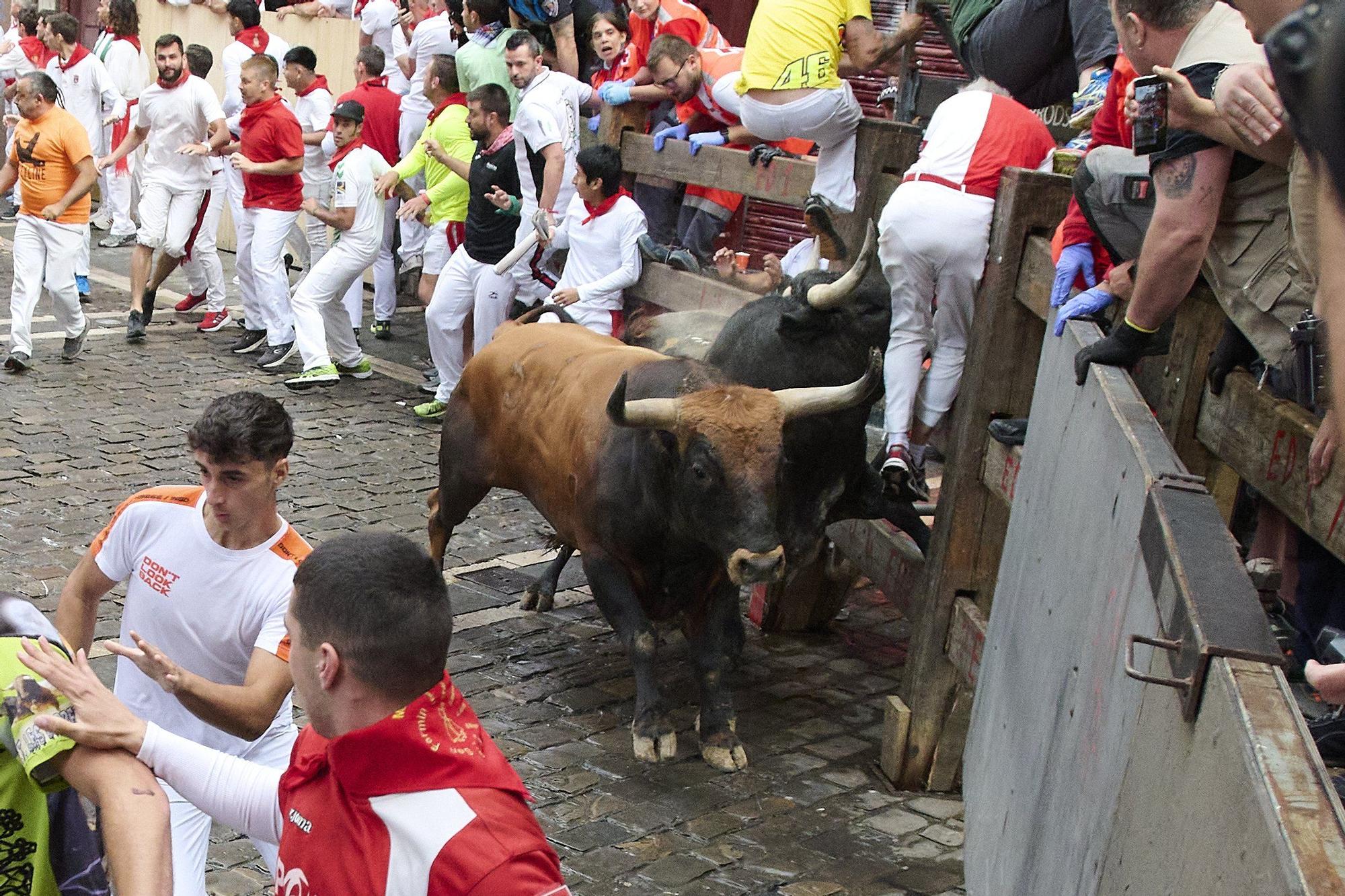 Ver galería >Imágenes del octavo y último encierro de estos Sanfermines con toros de Miura