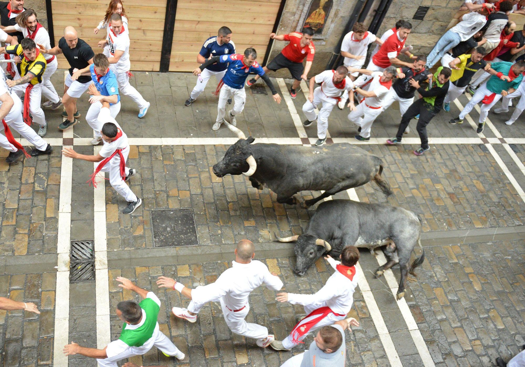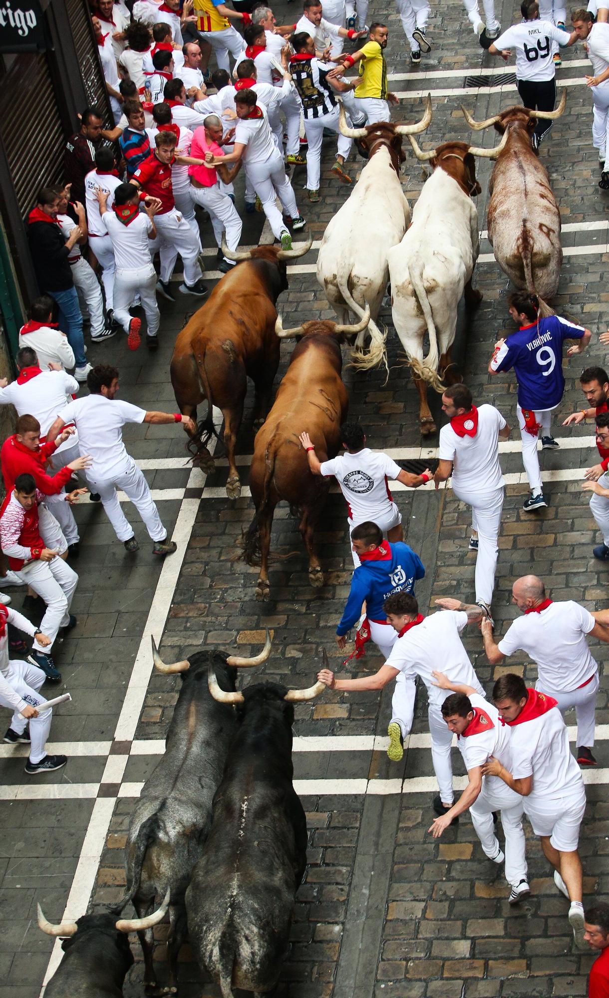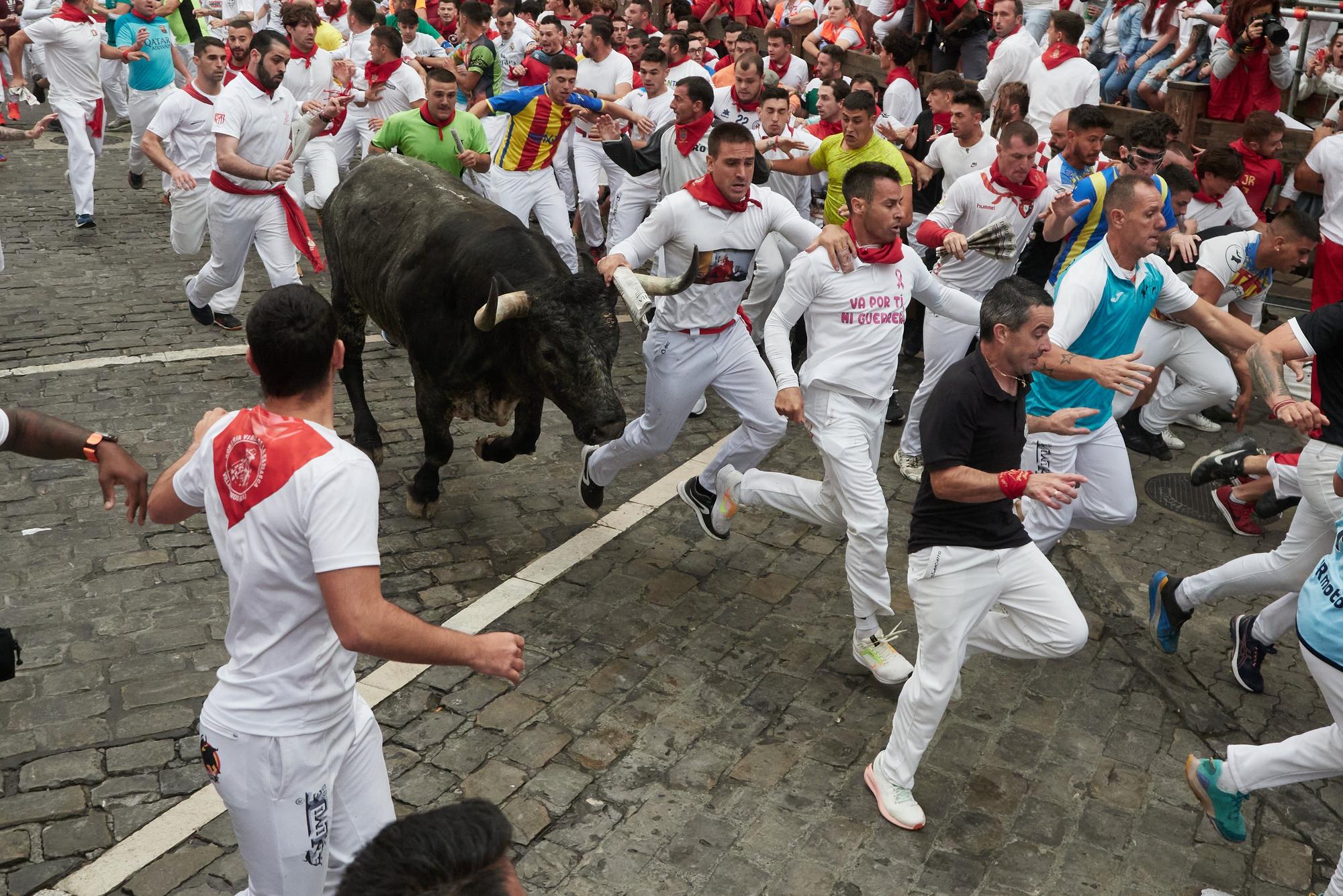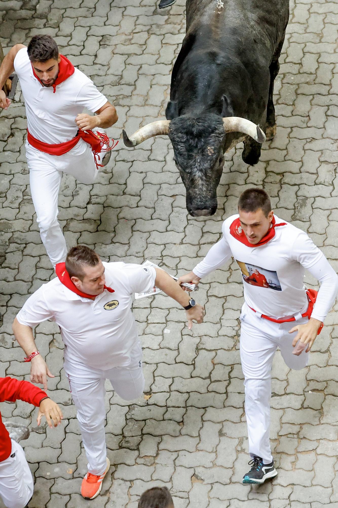 Ver galería >Imágenes del octavo y último encierro de estos Sanfermines con toros de Miura