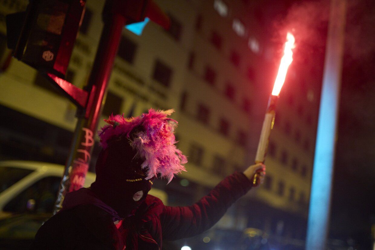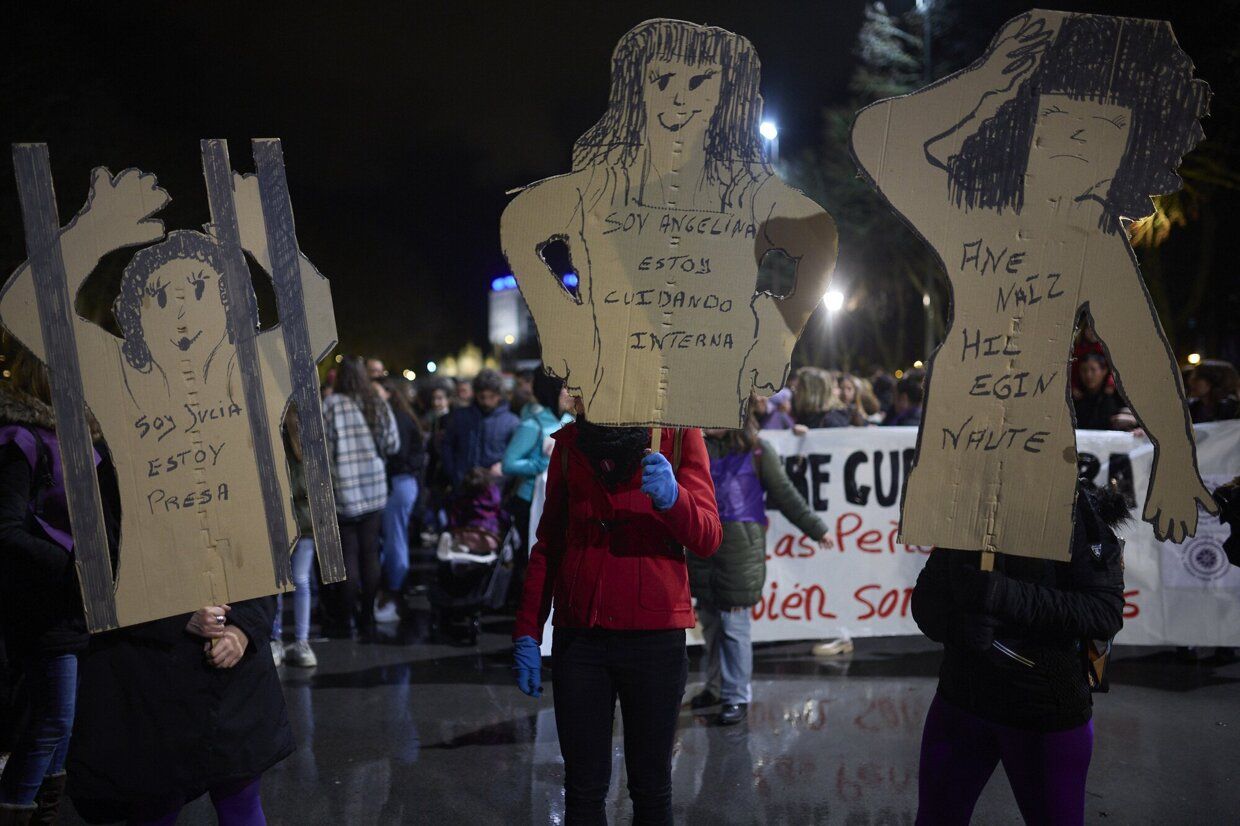 Participantes en la manifestación del 8M celebrada en Pamplona en la que se ha anunciado una huelga general para reivindicar un cambio en el modelo de cuidados.
