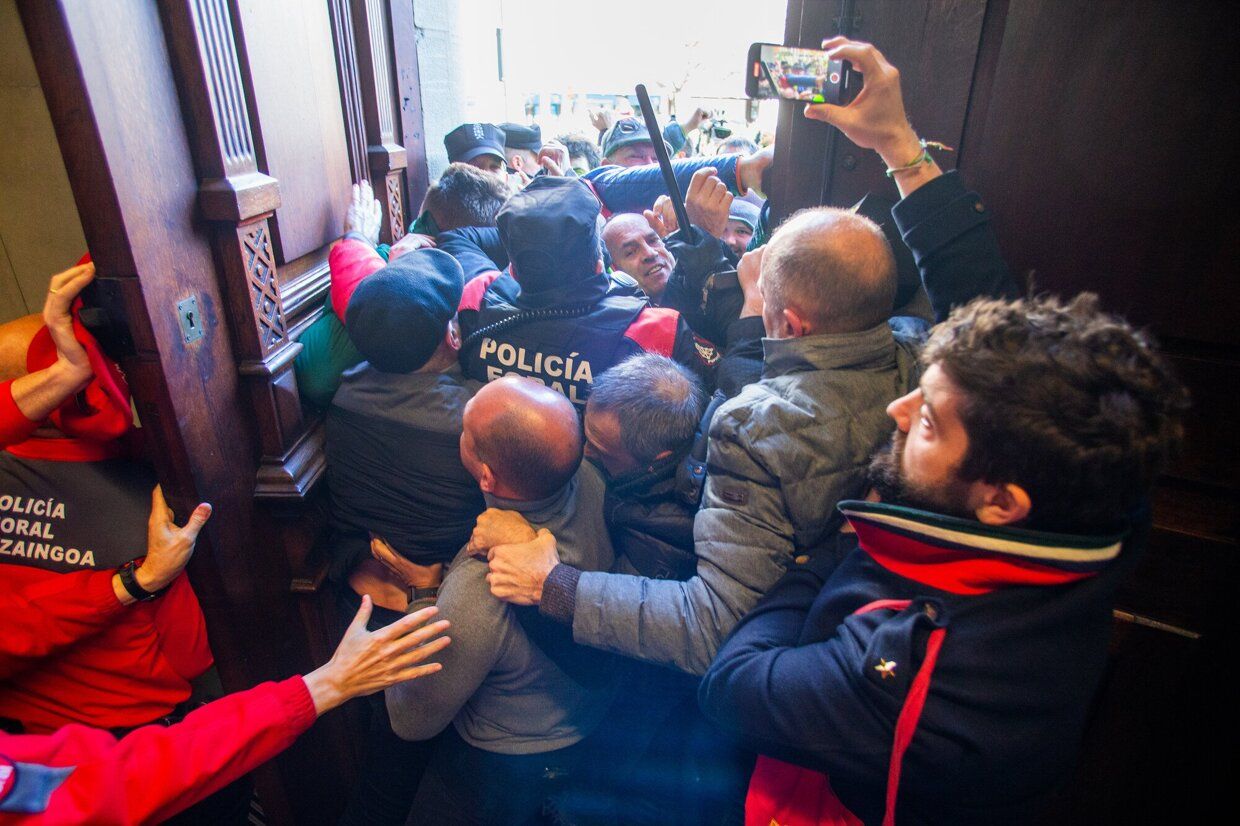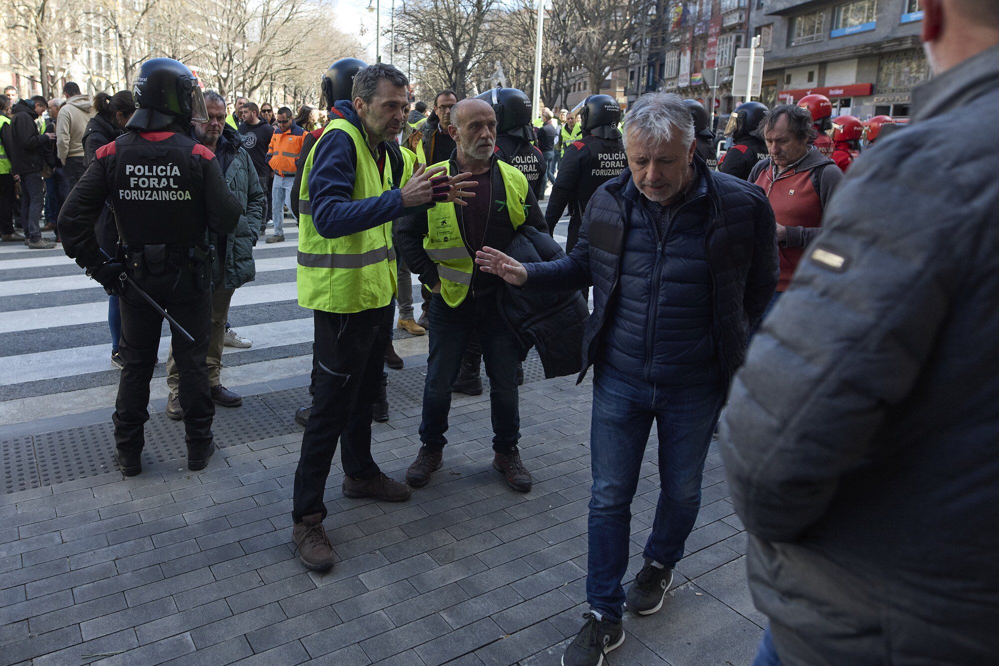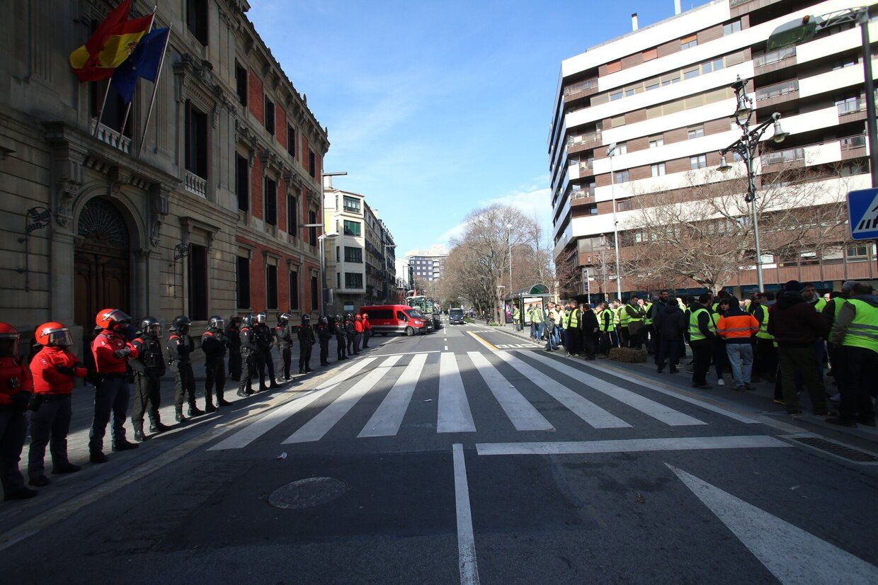 Ver galería >Una veintena de tractores aparcados a lo largo de la calle Navas de Tolosa con Paseo de Sarasate de Pamplona e incidentes a las puertas del Legislativo.