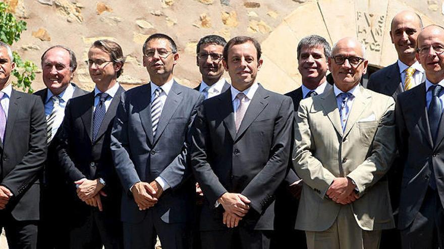 Allí se dieron cita cinco ex presidentes de la entidad (sólo faltó José Luis Núñez, que declinó la invitación); todos los técnicos profesionales de la entidad, los candidatos en los últimos comicios, así como Johan Cruyff, el presidente de honor del club, y el presidente del Racing de Santander, Francisco Pernía.