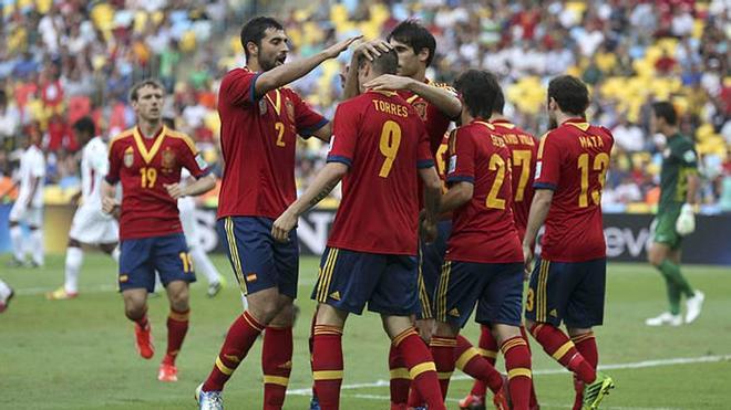 PAMPLONA. La selección española vence por 4-0 a Tahití al final del primer tiempo del partido entre ambos equipos en el estadio Maracaná de Río de Janeiro, correspondiente a la segunda jornada del grupo B de la Copa Confederaciones, con dos goles de Fernando Torres, uno de David Silva y otro de David Villa.