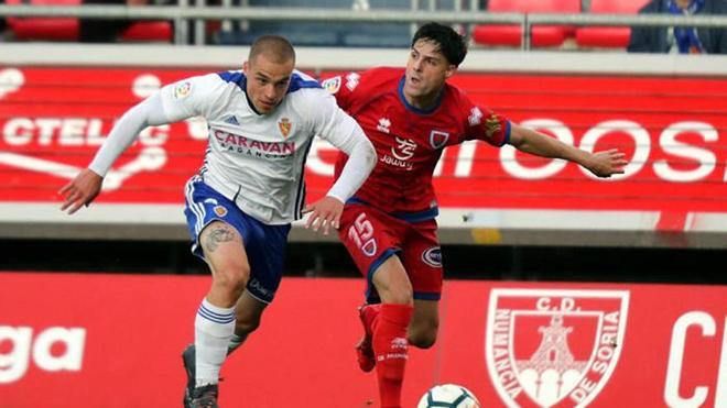 Apenas se habían consumido cuatro minutos, pero el Numancia reaccionó sin que los jugadores zaragocistas y su afición tuviesen tiempo de saborear la ventaja. En una contra por la derecha, apenas un minuto después, Unai Medina -jugando por delante del lateral derecho- chutó contra el poste y el rechace lo recogió Guillermo en el borde del área grande para rematar mordida, pero con dirección como para empatar.