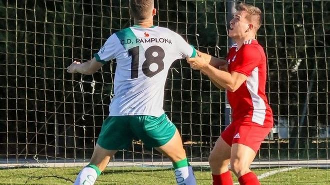 Primeros minutos de tanteo entre ambos equipos sin claras ocasiones de peligro. Los visitantes pasados los primeros minutos fueron cogiendo confianza y empezaron a someter más al Pamplona. No obstante, el Pamplona algo más replegado y con menos balón, se puso por delante gracias al gol del nuevo fichaje,Diego Peña. La buena presión alta del cuadro local propició el buen momento del cuadro franjiverde que estuvo cerca de ampliar el marcador.
