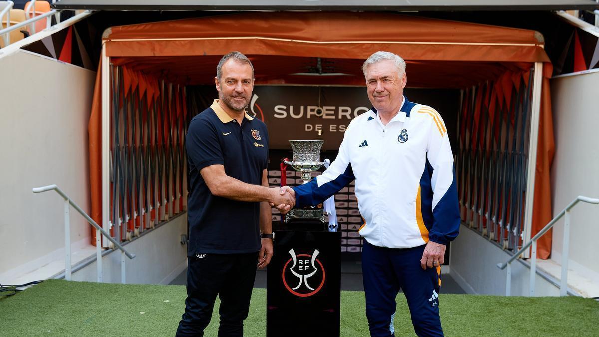 En su reto mayúsculo de lograr siete títulos en la temporada, el Madrid afronta su tercer peldaño tras coleccionar la Supercopa de Europa y la Copa Intercontinental, aunque tiene el mal recuerdo del 0-4 que le endosó el equipo culé en liga a finales de octubre, donde los puntas blancas cayeron en la telaraña del fuera de juego tendida por Flick.