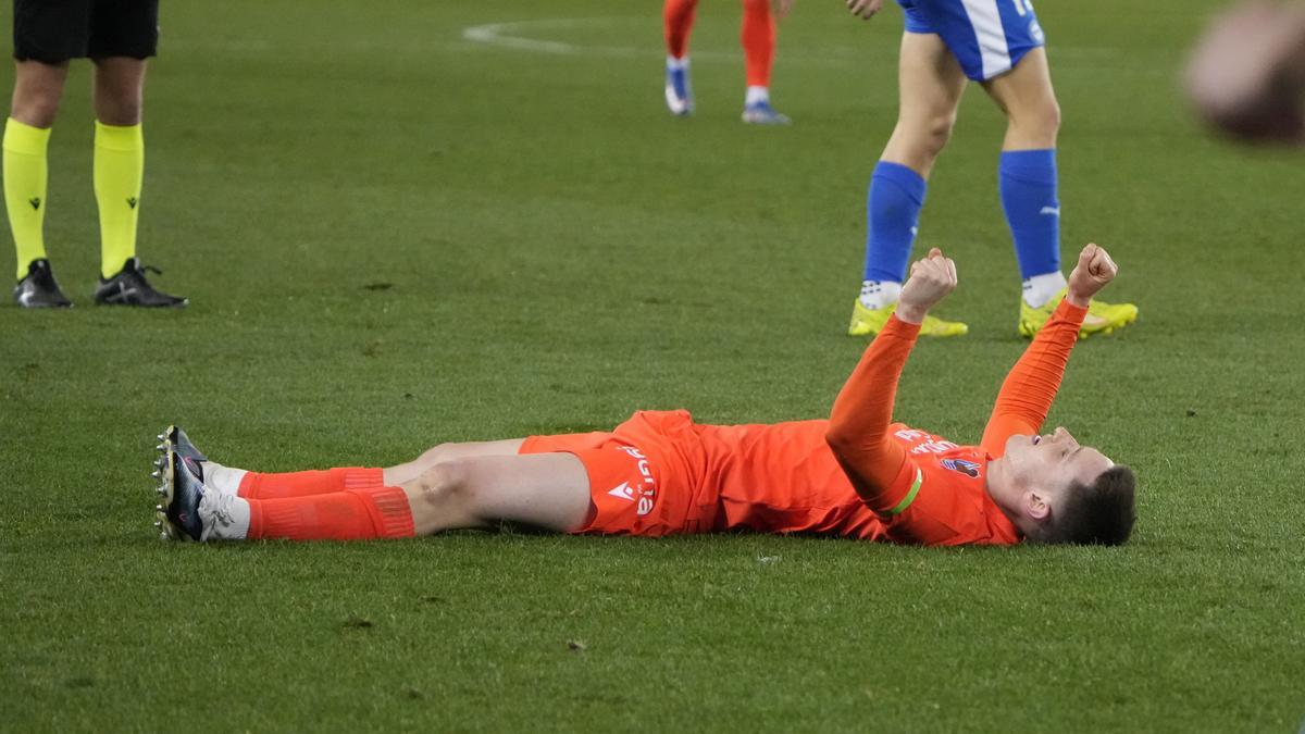 El árbitro decretó la pena máxima, pero Álex Remiro se hizo grande y detuvo el segundo lanzamiento desde los once metros del delantero albiazul, que intentó colar el balón por el mismo lado que en la primera ocasión.