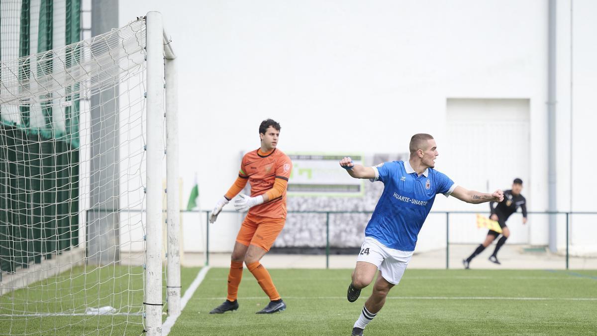 El Huarte se lleva un duelo directo con una actuación seria y con gran efectividad en ambas áreas. Nada más arrancar el encuentro Egoi adelantó a los visitantes con un magnífico cabezazo tras un centro lateral de Josu. El delantero cebollero pudo ampliar la ventaja tras un malentendido entre Larraz y su guardameta, pero no acertó en la definición. Quien sí volvió a aparecer fue Mikel Satrústegui, decisivo una semana más al sostener el 0-1 con un paradón a bocajarro ante Gonzalo. Poco después, Alberro evitó el empate de Zalduendo, mientras que Egoi volvió a rozar el segundo con otro testarazo libre de marca. Tras el descanso, Oberena trató de hacer daño con envíos largos a la espalda de la defensa, pero el Huarte estuvo firme y continuó apoyándose en Satrus. Egoi dispuso de otra ocasión en el segundo que detuvo Rubén Jimeno y Pedrito llegó a empatar con un golazo que sería anulado por fuera de juego. Ya en la recta final, el propio Egoi perdonó un mano a mano, que habría sentenciaodo, aunque poco después Lukin, tras una recuperación alta, asistió a Txintxe para firmar el segundo tanto, ya definitivo. Con este resultado, los azules confirman su buen estado de forma y aumentan la distancia con los manguiverdes.