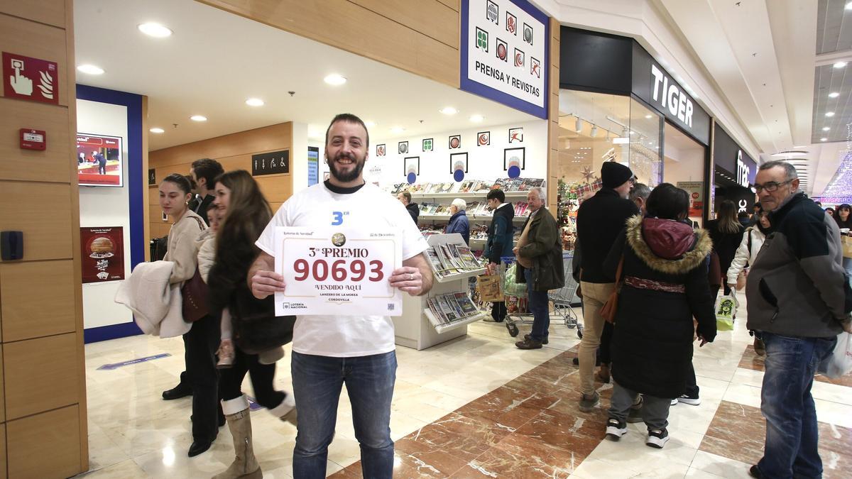 “Puedes vender mucho y que no toque nada, pero por suerte, este año hemos cumplido ambas”. Adolfo Mendizabal, lotero de la administración del centro comercial La Morea, ha entregado un pellizco del tercer premio de la Lotería de Navidad, correspondiente al número 90.693, de 50.000 euros al décimo.