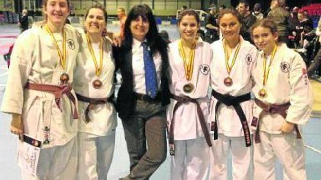 pamplona. El sábado se celebró en Villagarcía de Arosa (Pontevedra) el Campeonato de España de Kenpo, en el que cuatro navarros coparon el podio con dos medallas de oro, una de plata y otra de bronce. Las preseas doradas fueron para María Recalde en categoría infantil y Ainhoa Mancera en adulta, que sumó además el bronce en Técnicas de Defensa Personal. El último metal fue la plata de Zaira Latasa en Combate Continuo. Foto: cedida