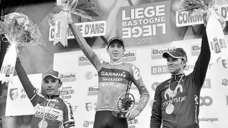 lieja. El ciclista irlandés del Garmin, Daniel Martin, se hizo ayer con el triunfo en la 99ª edición de la Lieja-Bastoña-Lieja en tierras belgas, después de lanzar un ataque a golpe de pedal a falta de un kilómetro para la finalización y así cruzar la meta en solitario después de recorrer los 261,5 kilómetros de asfalto que unían Lieja y Ans, por delante de los españoles Joaquim Purito Rodríguez (Katusha) y Alejandro Valverde (Movistar). Foto: europa press