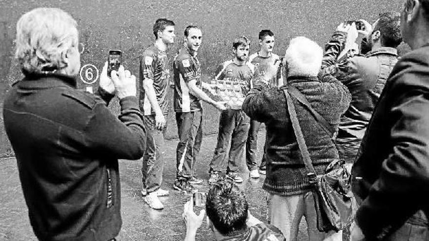 En lo puramente litúrgico, afirmó el pelotari de Berriz que "hemos elegido unas pelotas de características similares a las que vamos eligiendo durante todo el Parejas". Así, las de los de Asegarce son básicamente de medio bote y algo menos de salida de frontis que las de sus adversarios, tal y como resumió el vizcaino. "Ellos siempre suelen coger de más salida y con más bote, con más vuelo, pero son las seis pelotas bonitas. No hay ninguna queja", afirmó Pablo, quien escogió junto a Albisu un material de 104,5, 104,5 y 106,1 gramos; mientras que sus rivales se decantaron por cueros más pesados: 105,4, 106,8 y 105,5. Los de Aspe, por su parte, tardaron en concretar sus tres pelotas para el partido. "Las seis pelotas nos han gustado. Nosotros rápidamente hemos elegido dos, pero en la tercera ha habido más dudas. Las nuestras son igual más rápidas para intentar poner a Albisu en apuros", manifestó Zabaleta.