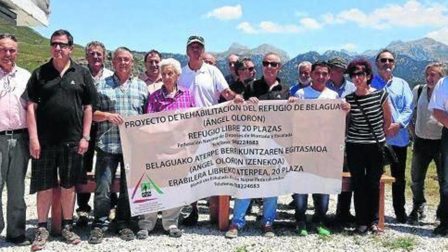 montañismo. Isaba vivió una jornada intensa en la presentación del anteproyecto de rehabilitación del refugio de Belagua -Ángel Olorón-. En los actos intervinieron el alcalde de Isaba, Jesús Baraze; Joan Garrigós, presidente de la Federación Española de Montaña; Martín Montañés, presidente de la Federación Navarra (promotor del proyecto); Louis Carrére, partenariado francés del proyecto, y Javier Eskisabel, del equipo redactor del anteproyecto. En la imagen, impulsores de la iniciativa, tras la inauguración del refugio libre para 20 personas. cedida