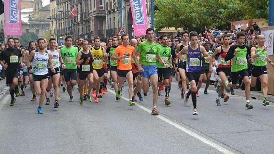 La prueba estelar del Cross de las Peñas de Tafalla se inició este año con un minuto de silencio en recuerdo del vecino de Berbinzana, José Javier Suescun, fallecido de forma repentina hace pocas semanas tras completar la Behobia-San Sebastián. La convocatoria resultó, una vez más, un completo éxito de participación y de organización, demostrando que se trata de una de las pruebas atléticas más veteranas y arraigadas del calendario korrikolari navarro y que continúa manteniendo su carácter eminentemente popular. Numeroso público a lo largo de todo el recorrido animó con entusiasmo el esfuerzo de los corredores, un total de 927 atletas distribuidos en diferentes categorías, es decir, 52 más que los inscritos en la pasada edición. 612 de ellos tomaron la salida en la prueba estelar, la de los mayores, 84 más que hace un año, mientras que 315 (32 menos que en 2014) se dieron cita en las pruebas que se realizaron de forma previa para los más pequeños.