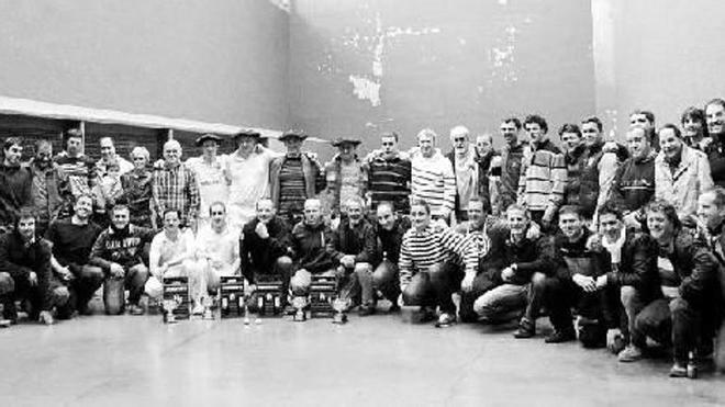 elizondo. La pareja formada por Oskariz y Ballarena se adjudicó la txapela del Campeonato de paleta de Baztan, el torneo más antiguo que se juega en el valle, al superar 40-27 a Plaza y Argarate, en la final que se disputó en el centenario Trinquete Antxitonea que registró el entradón de las grandes ocasiones. La final era inédita y hubo igualdad hasta la mitad del partido hasta que llegó el arreón de los campeones. El título de segunda categoría se lo adjudicaron Goienetxe y el exmanista profesional Unai Apeztegia que ganaron por 40-26 a Elizalde y Sansiñena. Tras la imposición de txapela y entrega de premios, llegó la habitual comida de hermandad y el estruendoso champanazo y bastante más. Foto: Ondikol