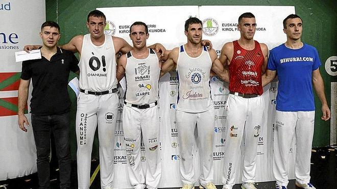 Los navarros Iker Vicente, Oier Kañamares y Joxean Etxeberria y los guipuzcoanos Hodei Ezpeleta, Julen Gabirondo y Jokin Urretabizkaia consiguieron ayer, en el frontón Ezkurra de Doneztebe, clasificarse para la final de Primera Categoría de Euskal Herria, en la que estará en juego el principal título individual de cada temporada.