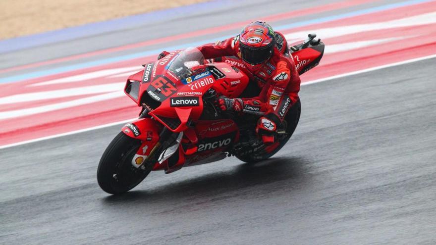 A falta de tres carreras, al murciano, que cuenta con 30 puntos de ventaja en la general sobre el transalpino, solo le vale ganar en Misano, donde no estará otro de los hasta ahora aspirantes al título, Sergio García Dols (GasGas), que se ha despedido de sus opciones tras no viajar a Italia por el golpe en el riñón que sufrió por una caída en el Gran Premio de Las Américas.