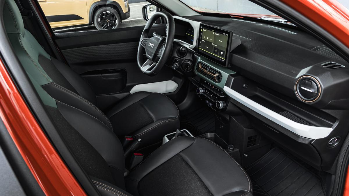 En cuanto al interior, el Spring 2024, sobre todo en la terminación Expression, es lo que se puede definir como un coche ‘básico’, en especial por su apariencia: La única pantalla es la de la instrumentación, hay pocos mandos y botones, los materiales plásticos son sencillos… Aún así, el equipamiento de serie es razonable y contempla el aire acondicionado, el cuadro digital de 7”, los sensores de aparcamiento traseros o las luces con encendido automático. Si lo quieres más completo, por 800 euros está el pack Techno que incluye un sistema multimedia con pantalla de 10”, cámara de marcha atrás y dos tomas USB-C.