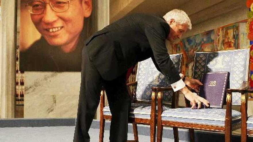 El sillón destinado a Liu, cuya foto presidió el escenario principal, permaneció vacío ante la negativa de las autoridades chinas a dejarle viajar a él o a algún familiar suyo a Oslo. Liu Xiaobo, que sucede desde ayer en el palmarés del Nobel de la Paz al presidente de EEUU Barack Obama, fue galardonado "por su lucha larga y no violenta por Derechos Humanos fundamentales en China".
