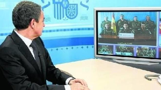 madrid. El presidente del Gobierno, José Luis Rodríguez Zapatero, se mostró el viernes convencido de que 2011 será un año "lleno de paz, con más prosperidad y con menos dificultades para todos". Así lo manifestó en una videoconferencia con motivo de la Navidad desde el Palacio de la Moncloa con las unidades españolas en misión humanitaria y de paz en el extranjero. Destacó la labor de los militares españoles desplegados en misiones exteriores y les transmitió el orgullo que siente el Gobierno y todos los españoles por su tarea "difícil y que merece la pena". Foto: efe