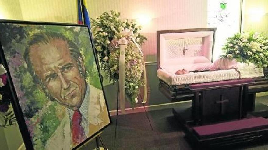 miami. El sepelio del ex presidente venezolano Carlos Andrés Pérez en Estados Unidos fue suspendido ayer y sólo se celebrará una misa en una iglesia de Miami, dijo una de sus hijas, Cecilia Victoria Pérez Matos. La suspensión del entierro se produce después de que la familia de Carlos Andrés Pérez que vive en Venezuela interpusiera una acción judicial para impedir que fuera enterrado en Miami. En la imagen, la capilla ardiente con los restos mortales del ex presidente venezolano, Carlos Andrés Pérez, junto con un retrato. Foto: gastón de cardenas