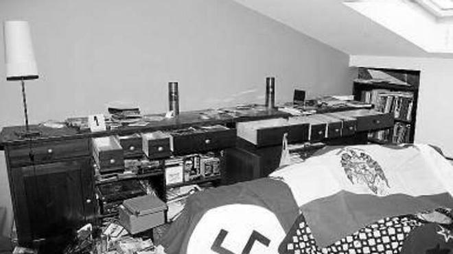 atenas. Una bandera española con el escudo franquista fue hallada durante el registro policial a la vivienda de Jristos Pappás, diputado y número dos del partido neonazi griego Amanecer Dorado. Entre el resto de materiales destacan tres armas de fuego carentes de licencia, un puño de acero y abundante material de propaganda fascista. Foto: efe