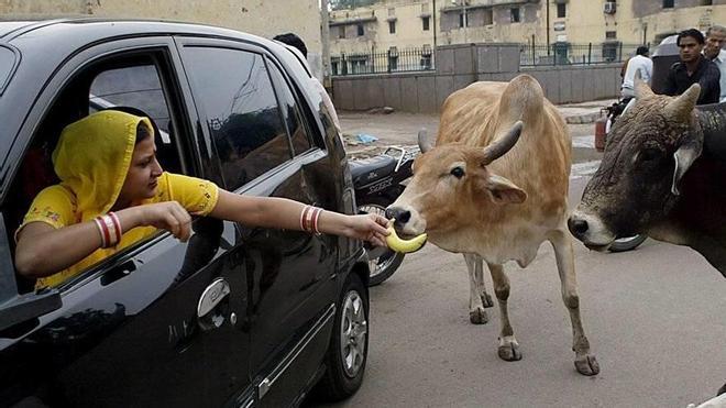 La vaca es considerada un animal sagrado en la religión mayoritaria de la India, el hinduismo, al ser la "morada" de los alrededor de 560 millones de dioses que pueblan su panteón, y su consumo está prohibido y penalizado por ley en muchas regiones.