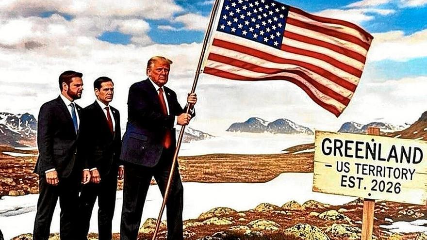 Mientras el ejército danés patrulla la isla con trineos tirados por perros, los Estados Unidos mantienen una base de última tecnología, preparada para cualquier intervención en su contra a nivel continental. Algo que obviamente mete presión a un gobierno groenlandés, que a pesar de tener total competencia en la gestión del territorio, más allá de la defensa exterior, que es responsabilidad del reino de Dinamarca, se ve entre la espada y la pared. En teoría, los groenlandeses tienen potestad y capacidad política para separarse de Dinamarca si ellos quieren. Lo que ha sido visto por Trump una auténtica oportunidad para apoyar una posible independencia de la isla, que abriese a la isla a lanzarse a los brazos de los Estados Unidos. Las fotos con Inteligencia Artificial, de Trump y Vance tomando Groenlandia con una bandera americana, difundidas por el propio Trump, no dejan lugar a la imaginación sobre los deseos del presidente norteamericano. Su respuesta arancelaria a las maniobras europeas en Groenlandia, es un aviso a navegantes.