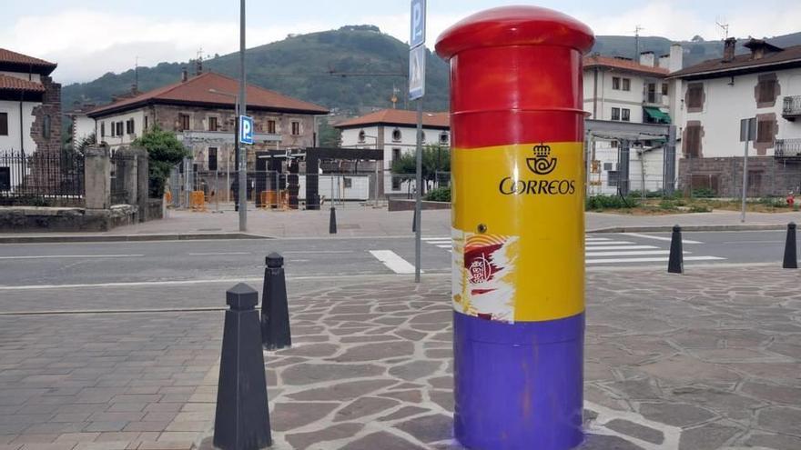 En este caso, la República se instala en Baztan, al menos en su simbología, de igual manera que se piensa en que esos colores debieron lucir en algún tiempo aquí, y en la Casa Consistorial contando como se contaba con un alcalde seguidor confeso. ¿Y de aquella bandera que debió ondear, qué habría sido? ¿Rasgada su tela y quemada como 75 años después amenaza hacer ese seudo clérigo yanqui de armas tomar (y lucir en su mano) o alguien logró salvar un retal inumiso? Ni se sabe. Y no muy lejos, unos cien metros atrás, otra muestra de expresividad artística, ésta en maloliente cagarro en protesta por la política sionista en Palestina, también con una utilización minimalista de los materiales y primando el sentimiento.