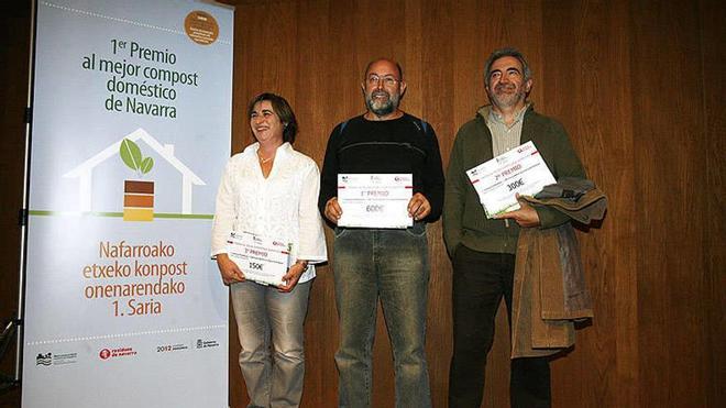 Yo lo baso en que hago agricultura ecológica, tengo una huerta pequeña de 100 m2 y lo que hago todo es en ecológico. Y para hacerlo la alimentación de mis gallinas también es en ecológico, que por cierto tengo que ir hasta Etxalar a por pienso ecológico porque no hay en otro sitio por aquí, pero bueno. Y luego yo lo que sí parto es de una base que a mí me da muy buenos resultados que es seguir el libro del lunario, donde viene una escala de los días que se pueden hacer compost de alto recalentamiento, compost de más bajo... Por ejemplo, esta semana he hecho un compost que al día siguiente ya estábamos casi en los 60 grados de temperatura. Eso lo que hace es que si hay semillas o hierbas las quema, y a partir de ahí empieza un proceso, se va enfriando más y llega un momento que cuando se va enfriando lo que hago es aportar bastantes lombrices de la misma huerta. Las cojo y las echo al compost y con ese calor se reproducen muchísimo. Entonces, hacen una función muy importante también. Yo, de todas maneras, para hacer el compost me he basado en el libro de Mariano Bueno Cómo hacer un buen compost. Manual para agricultores ecológicos -el cual recibieron como regalo ayer los 13 finalistas del concurso-, que lo tengo en casa desde que salió y la verdad es que me da unos resultados muy buenos, porque al principio sí que cometí algunos errores y con este libro me he basado en él y me ha ido muy bien.
