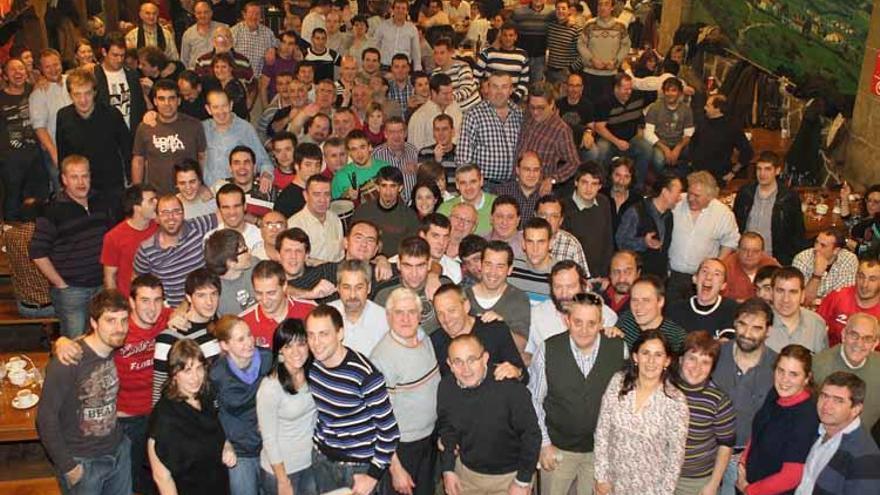 La comida tuvo lugar en la sidrería Kalean Gora de Pamplona, y a la misma fueron invitados, de forma especial, los miembros más veteranos del grupo, más de una treintena, la mayoría de los cuales ya están jubilados de la Comparsa. Durante la celebración, se brindó también un homenaje a los portadores que este año dejarán el grupo: Fernando Alfaro, Javier Garayoa, Oscar Castillejo, Patxi Olabarrieta, Edorta Salvador y Mikel Lumbreras. A todos ellos se les hizo entrega de un pañuelico verde con el escudo de la comparsa, pero no acabaron allí los galardones, ya que la junta directiva, que Mari Ganuza preside desde 1990, preparó para todos los portadores asistentes una reproducción en forma de llavero de la Medalla de Oro de la ciudad, que el Ayuntamiento de Pamplona otorgó el 29 de noviembre de 2009 a la Comparsa de Pamplona. Y hasta el propio Mari Ganuza acabó también siendo agasajado por sus compañeros.