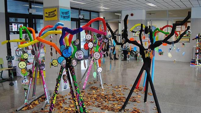Puntos de vista que se han plasmado en las instalaciones artísticas que estos días se pueden visitar en la entrada y los pasillos del colegio en horario escolar. Entre las obras, hay un bosque de las emociones, una pirámide de sonrisas, un telescopio y un puente de los sentimientos, un abecedario emocional, momentos y sentimientos, la amistad como arte y un buzón de los sentimientos.
