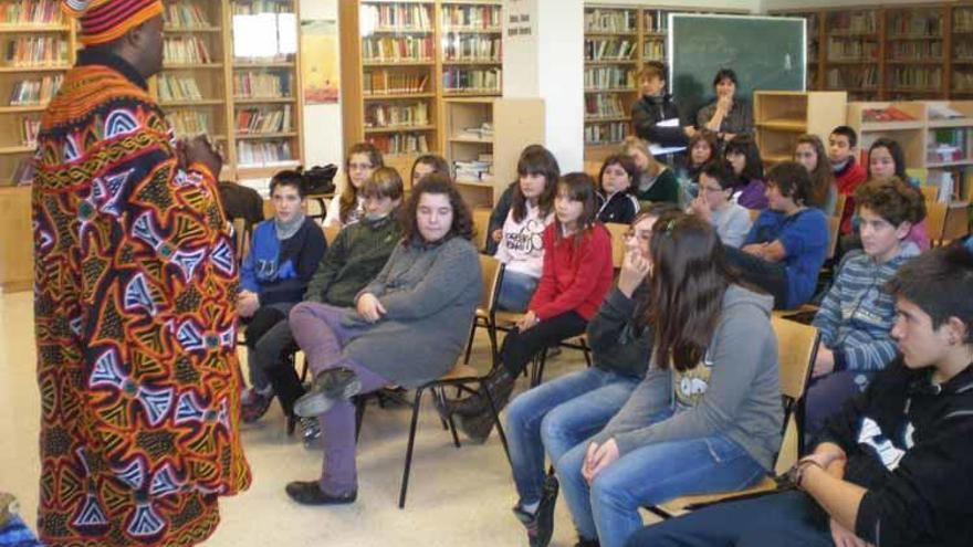 El escritor camerunés Boni Ofogo fue el encargado de abrir ayer la campaña en el IES Tierra Estella y recordó que "en mi infancia tuve la fortuna de que nos contaban cuentos, todo el mundo los contaba. La oralidad me llevó a la lectura". Ofogo destacó la importancia de fomentar estas aficiones: "una cosa lleva a la otra, son dos caras de la misma moneda", y añadió que "somos seres de palabra. Inculcar el amor a la palabra oral es una buena forma de inculcar el amor por la palabra escrita".