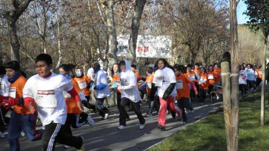 sangüesa. A pesar de la fría mañana, ayer, a las 12 del mediodía, cerca de dos centenares de alumnos de 4º, 5º y 6º del colegio Luis Gil y de la ikastola de Sangüesa participaron en la tradicional carrera solidaria organizada por la organización no gubernamental Acción Contra el Hambre con dos objetivos fundamentales: recaudar fondos para la lucha contra el hambre y trabajar con los alumnos de estos cursos de Primaria valores de responsabilidad y de cooperación al desarrollo con los pueblos más desfavorecidos.
